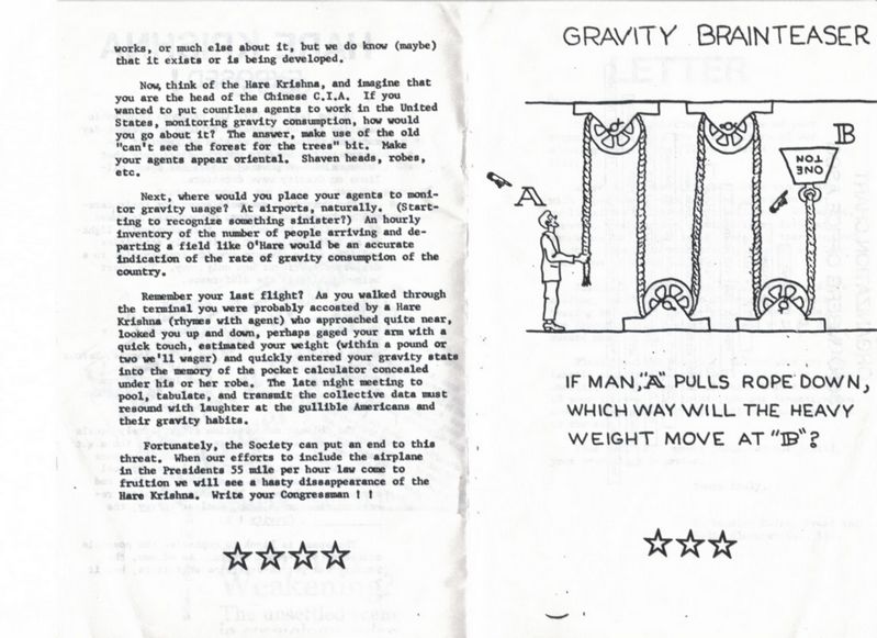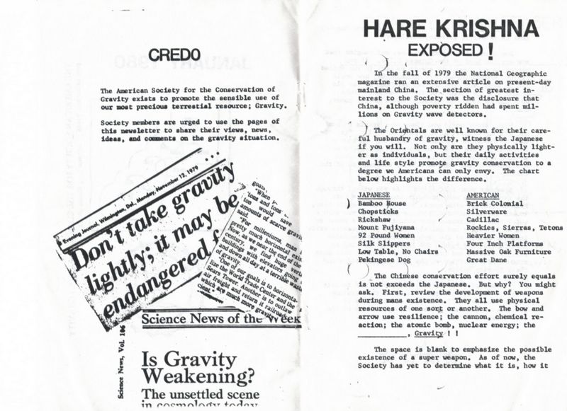 This is one of the few surviving copies of the GRAVITONIAN newsletter that the society put out in January 1980.